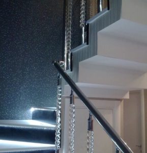 Krom korkuluklar, parlak ve modern bir görünüm sunar. Genellikle iç mekanlarda tercih edilen bu korkuluklar, estetik açıdan göz alıcıdır ve aynı zamanda dayanıklıdır.